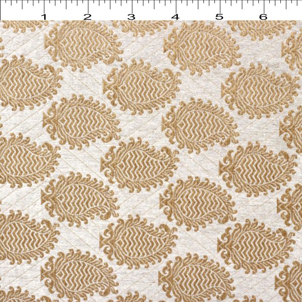 What goes more beautiful than a free hand motif design running across Dyeble Dark Champagne Metallic Brocade Jacquard fabric polyester brocade fabric? The Free hand fashion geometry can make or break the monotonous pattern design….Break the singularity of pattern and create a lovely contrast by using in the Garments like Women Kurti’s or Jackets or Bold Chic’s ankle length pants or Saree Borders, or Men’s Shirt… This Jacquard does it all. To add charm and break homogeneity in the home decor or upholstery, use it to tuck the cushions or a drape.