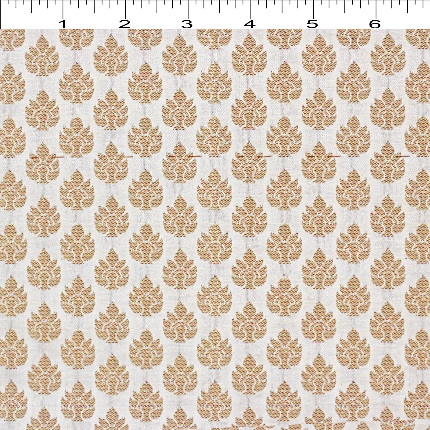 Nature Inspired Leaf shape blended with A Free Handi Butti  across Dyeable Dark Champagne Metallic Brocade Jacquard fabric styles and doubles the beauty by two different inspiration.  To add charm and break homogeneity in the home decor or upholstery, use it to tuck the cushions or a drape. Break the singularity of pattern and create a lovely contrast  by using in the Garments like Women Kurti’s or Jackets or Bold Chic’s ankle length pants or Saree Borders, or Men’s Shirt, Indian Traditionals like Sherwani, Kurta, etc… The Jacquard creates freshness and design in the apparels or home decor..
