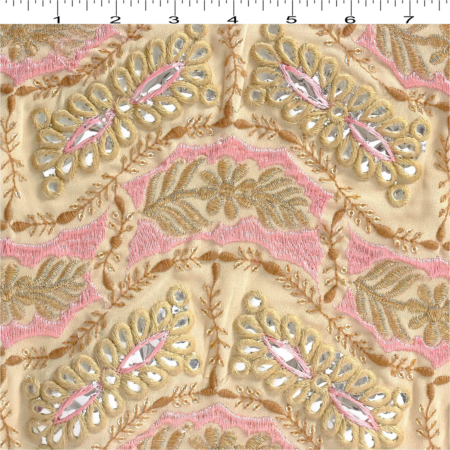 HomeShopEmbroidery Mirror Work Dark Beige-Pink Fabric