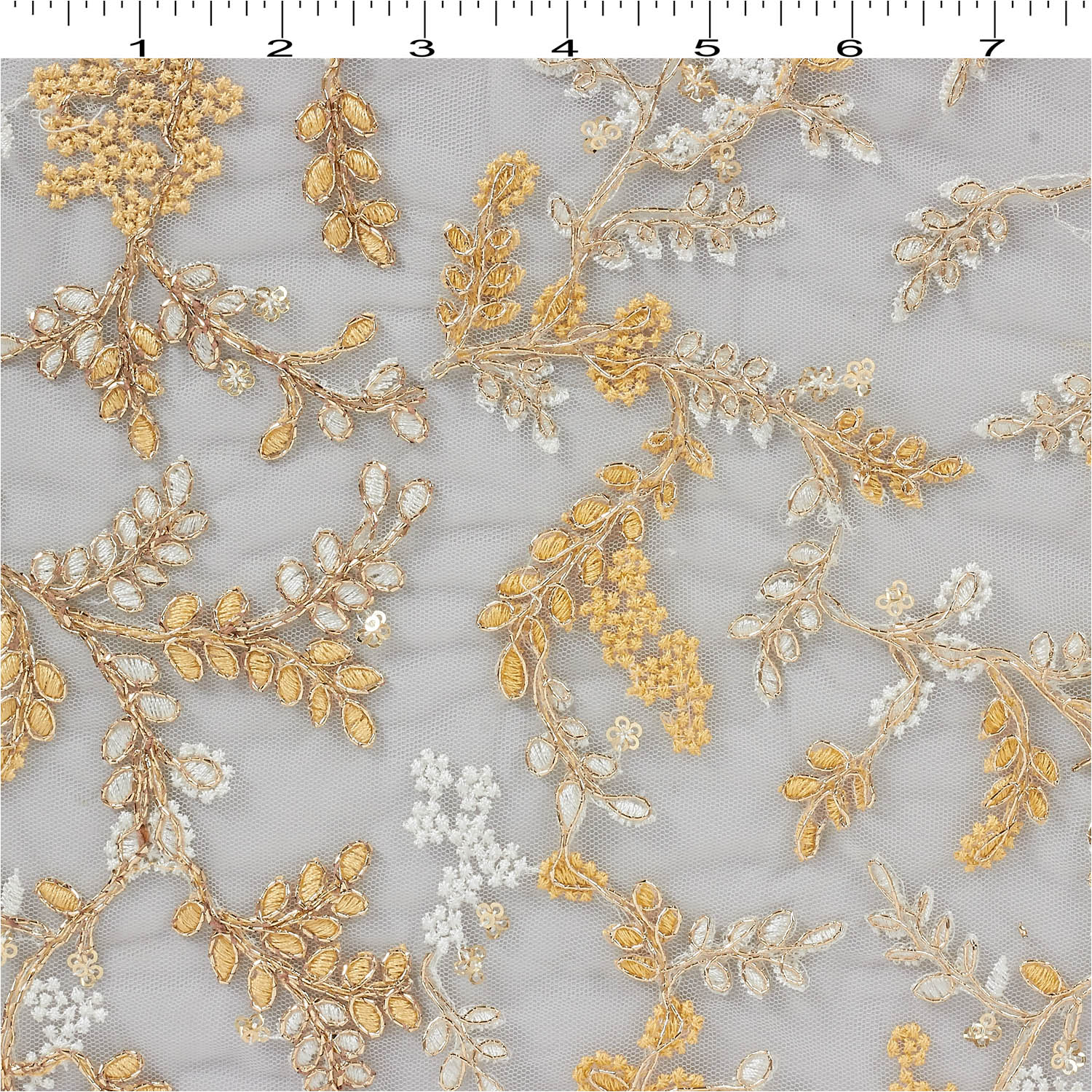 Dyeable Codeing Work Gold/White Fabric