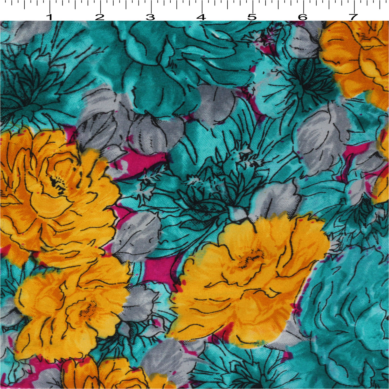 Satin Print – Yellow/Pink-Green Fabric